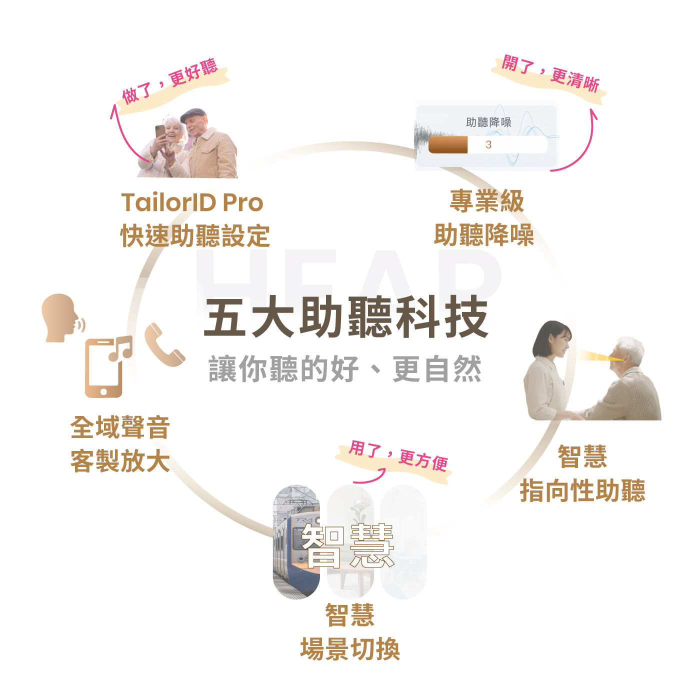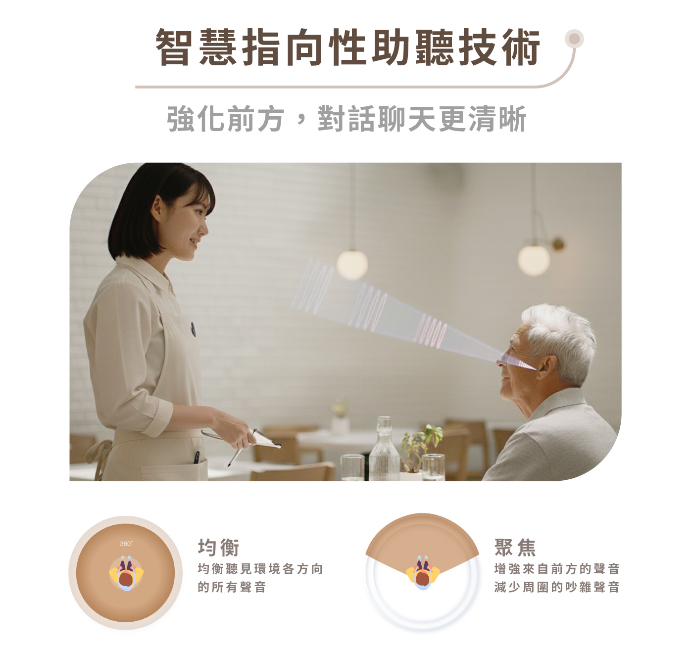智慧場景切換、指向性模式、聽力保護機制,能夠滿足中~重度聽損者日常生